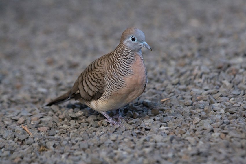 Zebra doves are some of the most commonly seen birds in urban areas in Hawaii. They frolic in beach parks, on sidewalks, in shopping centers and yards. They are quite tame and often times don't fly away when a human comes close to them.