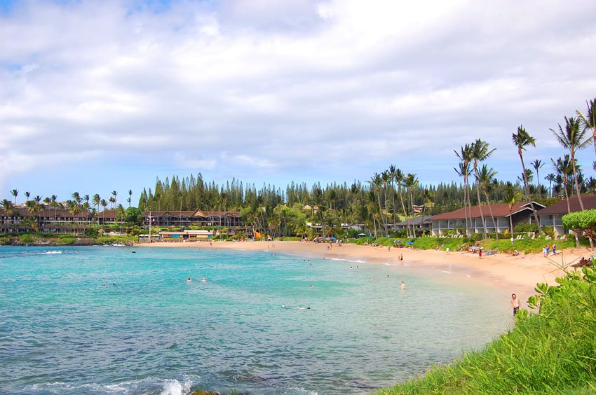 Napili Bay is known for its fine white sand. It lies between two rocky points and is an excellent beach for swimming and other water activities. There are many hotels and vacation rentals on Napili Bay, so it's a rather busy beach.