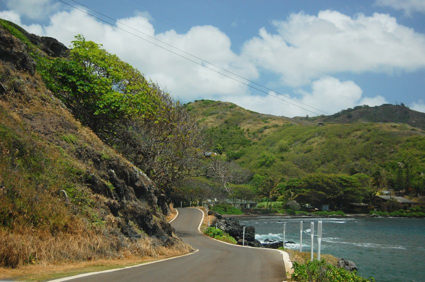 Kamehameha Highway (Hwy 450) (view panorama) × leads along Molokai's southeastern shore, all the way from Kaunakakai to Halawa Valley. It is therefore also known as Halawa Valley Drive. This scenic drive only describes the section of Kamehameha Highway from Mile Marker 20 to 22. Mile Marker 20 is where popular Murphy's Beach (also known as Mile Marker 20 Beach) is located. This is one of the better-known Molokai beaches and a favorite snorkeling spot when the ocean is calm. Many people as well as small tour buses only drive up until here because after Murphy's Beach, the road gets narrower and curvier.