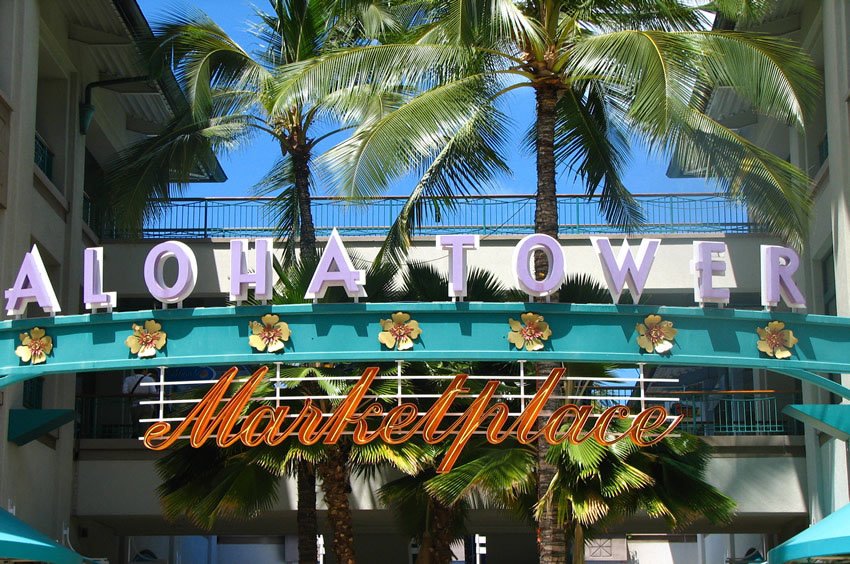 The historic Aloha Tower is located here as well. There's an elevator that takes visitors to a 360-degree viewing platform on the 11th floor. It's a great place for picture-taking. You'll be able to see Honolulu downtown, the airport, the harbor and Waikiki from a bird's eye view. Please note: The Aloha Tower observation deck is currently closed for repairs per the Department of Transportation Harbors Division. There is currently no expected open date.