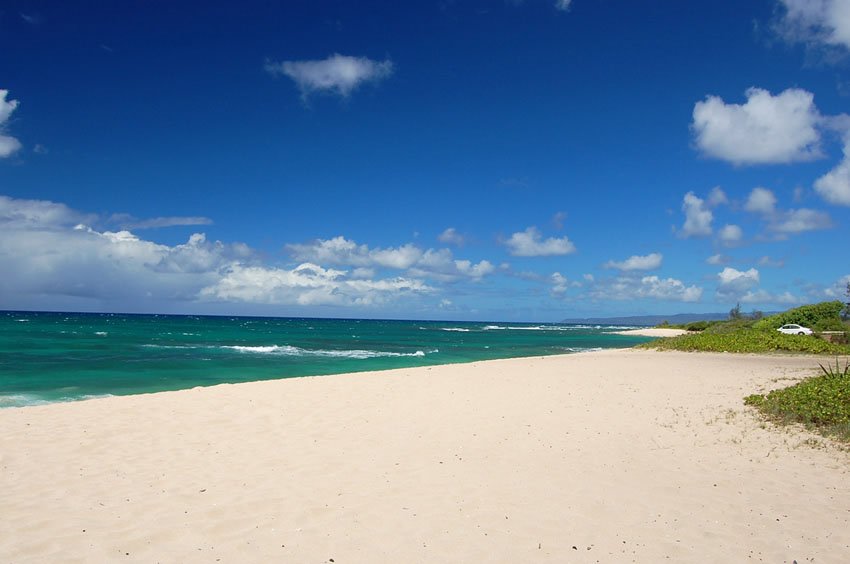 - Remote white-sand beach (view panorama) × at the end of Farrington Highway