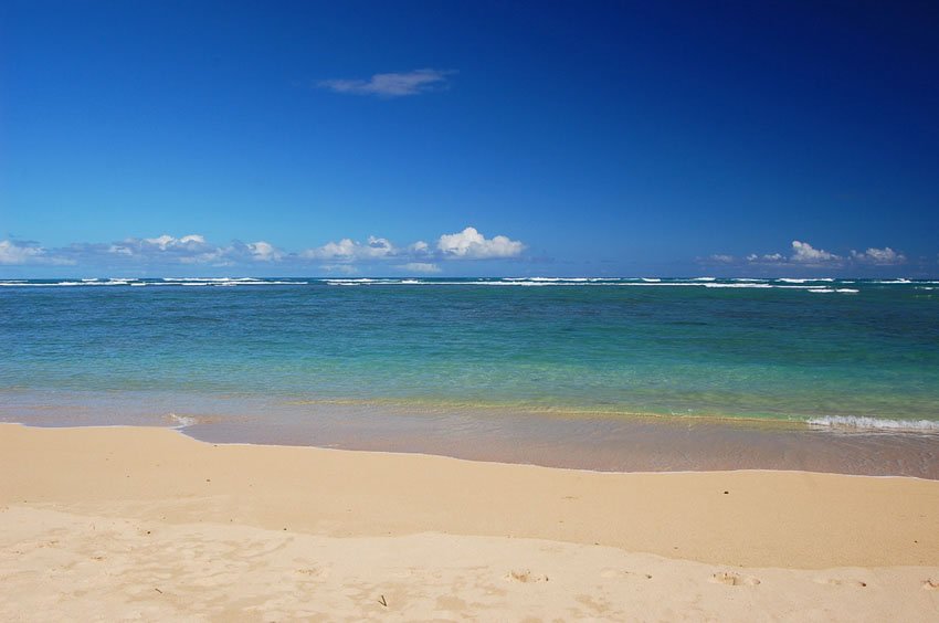 Ka'a'awa Beach Park (view panorama) × on Oahu's windward coast has a narrow sandy beach. Because of a shallow reef on the nearshore ocean bottom, the swimming conditions are rather poor. There are a few sandy patches on the nearshore ocean bottom where it's fun to splash around in. Otherwise snorkeling can be fun when the ocean is calm.